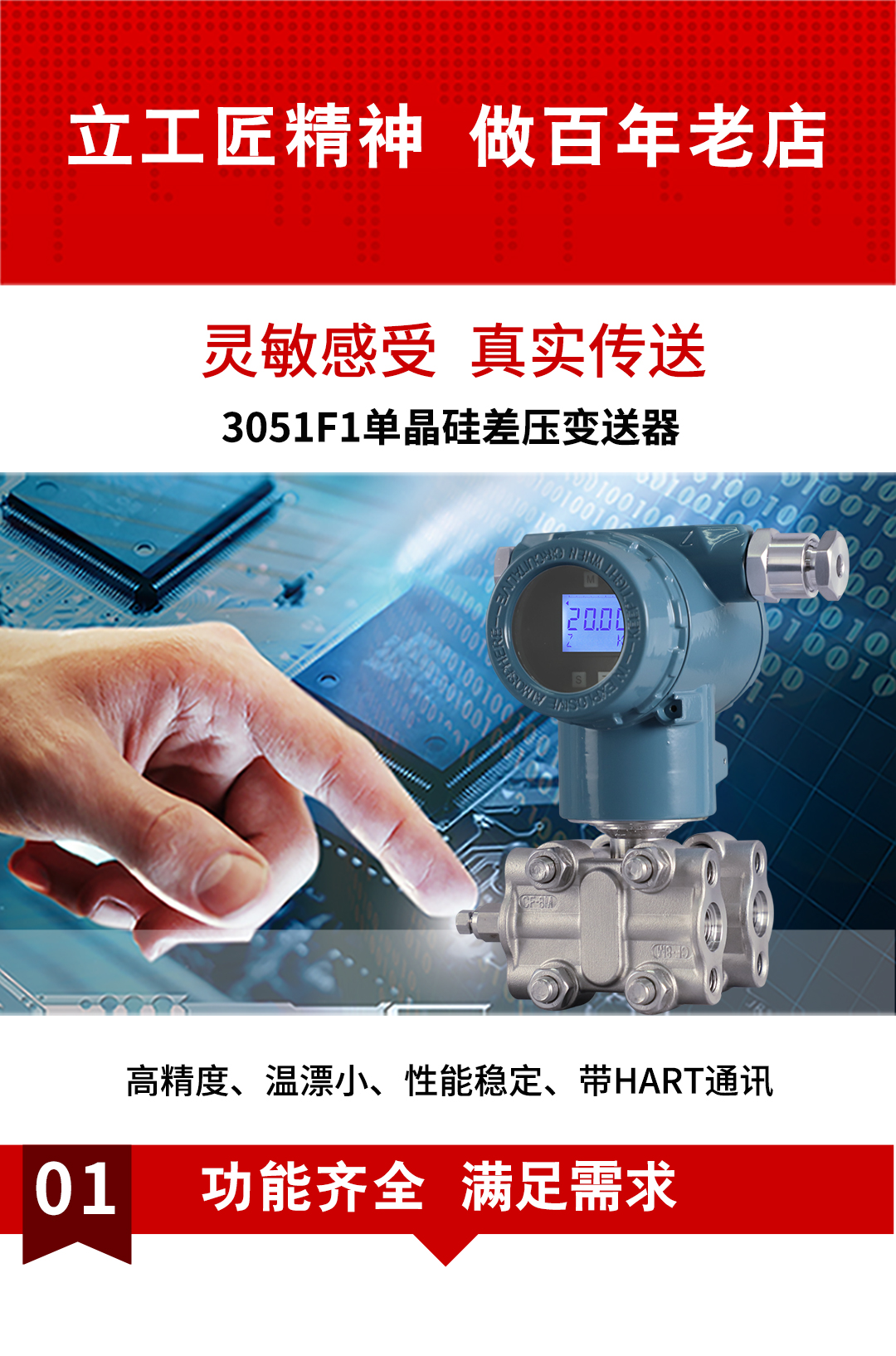 虹潤(rùn)公司是專(zhuān)業(yè)生產(chǎn)壓力變送器的國(guó)家專(zhuān)精特新“小巨人”企業(yè),生產(chǎn)的單晶硅壓力變送器,具有高精度,小溫漂,性能穩(wěn)定,帶HART通訊,抗干擾能力強(qiáng),自診斷功能等特點(diǎn)。產(chǎn)品獲得一種數(shù)字顯示低功耗壓力表、一種信號(hào)發(fā)生器裝置等2項(xiàng)國(guó)家發(fā)明專(zhuān)利,主持起草工業(yè)過(guò)程控制系統(tǒng)用模擬輸入兩位或多位輸出儀表、工業(yè)過(guò)程測(cè)量和控制系統(tǒng)用壓力/差壓變送器等2項(xiàng)國(guó)家標(biāo)準(zhǔn),通信系統(tǒng)多通道數(shù)據(jù)采集控制終端規(guī)范軍用標(biāo)準(zhǔn),以及現(xiàn)場(chǎng)設(shè)備集成等5項(xiàng)智能制造國(guó)家標(biāo)準(zhǔn)。參與國(guó)際5G標(biāo)準(zhǔn)制定,取得數(shù)顯壓力表等2項(xiàng)相關(guān)軟件著作權(quán)。產(chǎn)品廣泛應(yīng)用于化工、食品、制藥、電力、設(shè)備配套、供暖、水處理、樓宇等行業(yè),需精準(zhǔn)測(cè)量流體壓力的現(xiàn)場(chǎng)。
