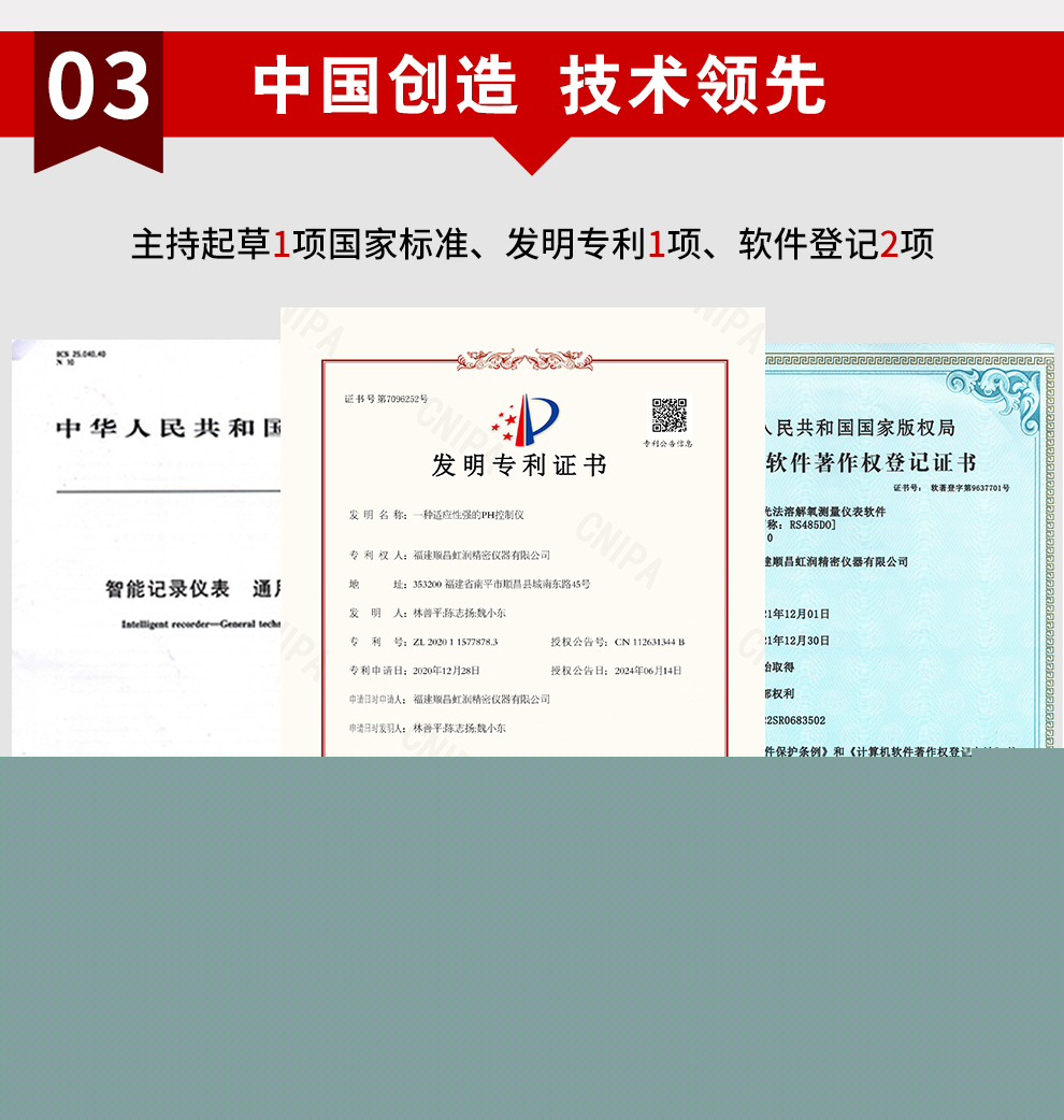 虹潤公司是專業(yè)生產(chǎn)水質(zhì)分析儀的國家專精特新“小巨人”企業(yè)。生產(chǎn)的熒光法溶解氧控制器,具有采用熒光法測量,中英文菜單切換 ,溫度、壓力、鹽度三重補(bǔ)償,標(biāo)配報(bào)警、變送、RS485通訊等特點(diǎn)。產(chǎn)品獲得產(chǎn)品獲得一種高精度在線溶解氧測量儀表、智能化控制器等2項(xiàng)國家發(fā)明專利;主持起草液體熒光氧分析儀的性能表示、現(xiàn)場設(shè)備工具(FDT)接口規(guī)范、工業(yè)過程控制系統(tǒng)用模擬輸入兩位或多位輸出儀表以及過程分析技術(shù)系統(tǒng)等4項(xiàng)國家標(biāo)準(zhǔn);參與國際5G標(biāo)準(zhǔn)制定,取得溶解氧測量儀表等2項(xiàng)相關(guān)軟件著作權(quán)。產(chǎn)品廣泛應(yīng)用于實(shí)驗(yàn)室、水處理、環(huán)境監(jiān)測、食品、制藥、農(nóng)業(yè)等諸多領(lǐng)域。