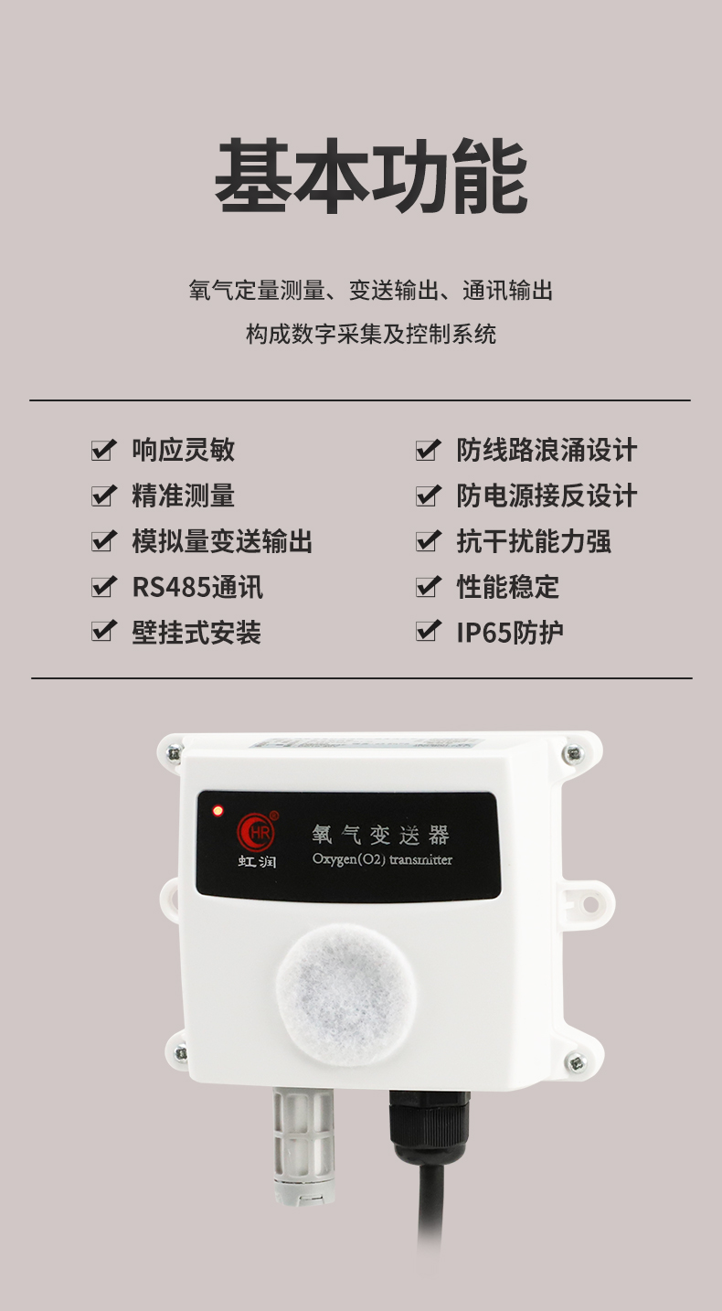 虹潤公司是專業(yè)生產(chǎn)環(huán)境監(jiān)測儀表的國家專精特新“小巨人”企業(yè)。生產(chǎn)的氧氣變送器,具有采用電化學(xué)原理,響應(yīng)靈敏,準(zhǔn)確度高,低功耗,模擬量變送輸出或RS485通訊等特點。產(chǎn)品獲得一種農(nóng)業(yè)監(jiān)控變送器、一種儀表電源等2項實用新型專利,主持起草現(xiàn)場設(shè)備集成等5項智能制造國家標(biāo)準(zhǔn),以及現(xiàn)場設(shè)備工具(FDT)接口規(guī)范、物聯(lián)網(wǎng)總體技術(shù)智能傳感器特性與分類等2項國家標(biāo)準(zhǔn),參與國際5G標(biāo)準(zhǔn)制定,取得農(nóng)業(yè)監(jiān)控變送器等3項相關(guān)軟件著作權(quán)。產(chǎn)品廣泛應(yīng)用于機房、配電站、地下車庫、工廠倉庫、食品儲存、養(yǎng)殖場、果蔬林園等環(huán)境場合對氧氣濃度的檢測。
