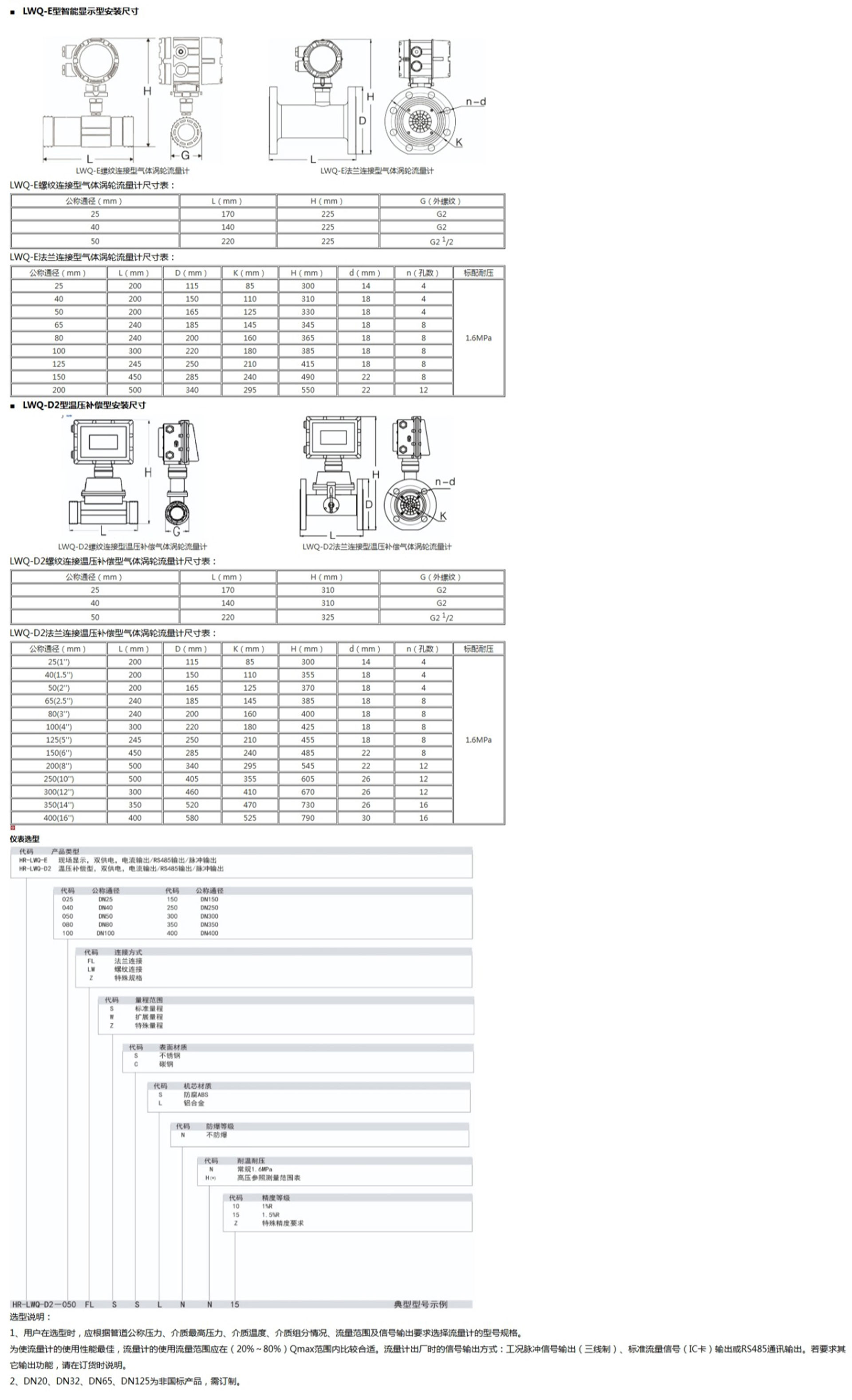 HR-LWQ系列氣體渦輪流量計