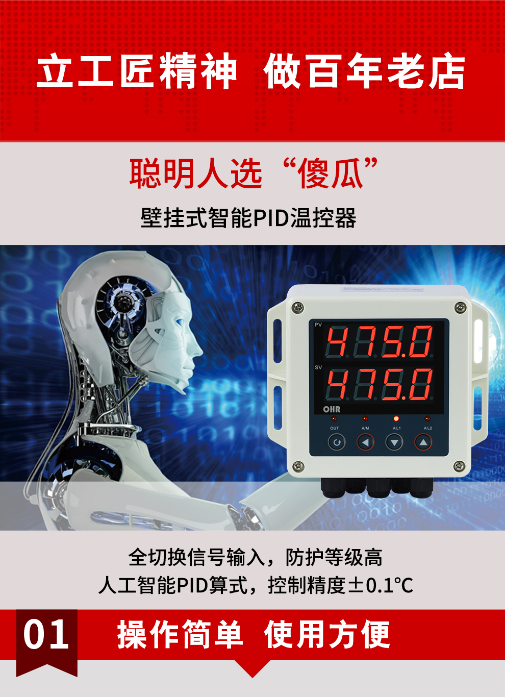 虹潤公司是專業(yè)生產(chǎn)溫控器的國家專精特新“小巨人”企業(yè)。生產(chǎn)的壁掛式PID溫控器,具有全切換信號輸入,真正人工智能算式,控制精度達士0.1°C,防護等級高,RS485通訊輸出DN等特點。產(chǎn)品獲得模糊PID控制儀及控制方法、人工智能調(diào)節(jié)器、智能化控制器、移相觸發(fā)控制器、閥門自動手動無擾動操作控制方法及裝置等5項國家發(fā)明專利,主持起草主持起草工業(yè)過程控制系統(tǒng)用模擬輸入兩位或多位輸出儀表、物聯(lián)網(wǎng)智能溫度儀表通用技術(shù)條件、工業(yè)過程測量和控制系統(tǒng)用智能調(diào)節(jié)器等3項國家標準,以及通信系統(tǒng)多通道數(shù)據(jù)采集控制終端規(guī)范軍用標準。參與國際5G標準制定,取得傻瓜式PID調(diào)節(jié)儀等3項相關(guān)軟件著作權(quán)。產(chǎn)品廣泛應用于電力、石化,冶金、制藥、食品等幾乎所有工業(yè)現(xiàn)場,實現(xiàn)精準控溫,保障生產(chǎn)安全與質(zhì)量。
