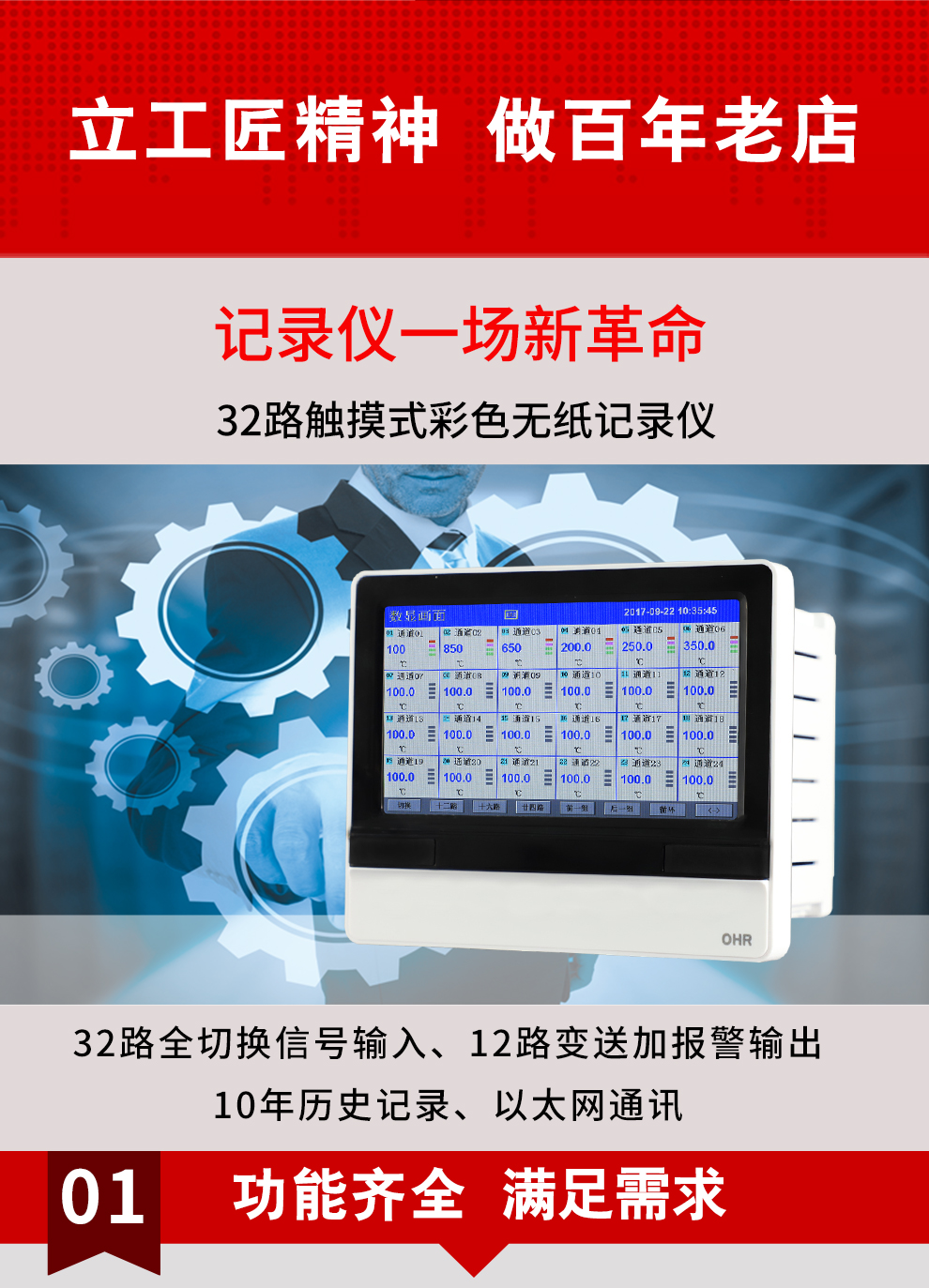 虹潤公司是專業(yè)生產(chǎn)無紙記錄儀的國家專精特新“小巨人”企業(yè)。生產(chǎn)的觸摸式彩色無紙記錄儀,具有32路全切換輸入,通道之間相互隔離,數(shù)據(jù)記錄與轉(zhuǎn)存功能,配套上位機(jī)管理軟件,RS485/以太網(wǎng)通訊等特點(diǎn)。產(chǎn)品獲得無紙記錄儀、數(shù)據(jù)采集控制工作站、智能化控制器、巡回檢測顯示方法及裝置等4項(xiàng)國家發(fā)明專利;主持起草物聯(lián)網(wǎng)智能記錄儀表通用技術(shù)條件、物聯(lián)網(wǎng)智能溫度儀表通用技術(shù)條件等2項(xiàng)國家標(biāo)準(zhǔn),通信系統(tǒng)多通道數(shù)據(jù)采集控制終端規(guī)范軍用標(biāo)準(zhǔn),以及空間數(shù)據(jù)與信息數(shù)據(jù)傳輸系統(tǒng)等2項(xiàng)航天標(biāo)準(zhǔn)。參與國際5G標(biāo)準(zhǔn)制定;取得觸摸式彩色無紙記錄儀等4項(xiàng)相關(guān)軟件著作權(quán)。產(chǎn)品廣泛應(yīng)用于石化、冶金、電力、制藥、新能源、農(nóng)業(yè)等諸多領(lǐng)域。