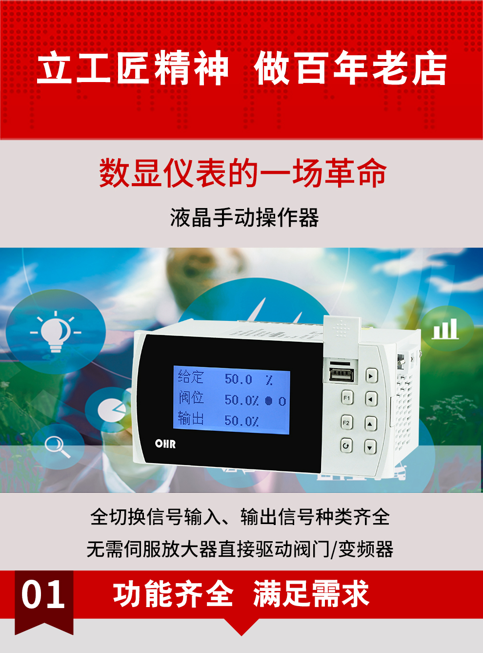 虹潤(rùn)公司是專業(yè)生產(chǎn)智能手操器的國(guó)家專精特新“小巨人”企業(yè),生產(chǎn)的液晶手動(dòng)操作器,具有全切換信號(hào)輸入,通道之間相互隔離,手自動(dòng)無擾動(dòng)切換配上位機(jī)管理軟件等特點(diǎn)。產(chǎn)品獲得閥門自動(dòng)手動(dòng)無擾動(dòng)操作控制方法及裝置、模糊PID控制儀及控制方法、移相觸發(fā)控制器等3項(xiàng)國(guó)家標(biāo)準(zhǔn),主持起草工業(yè)過程控制系統(tǒng)用模擬輸入兩位或多位輸出儀表、流程工業(yè)中電氣/儀表和控制系統(tǒng)的試車等2項(xiàng)國(guó)家標(biāo)準(zhǔn),以及通信系統(tǒng)多通道數(shù)據(jù)采集控制終端規(guī)范軍用標(biāo)準(zhǔn),參與國(guó)際5G標(biāo)準(zhǔn)制定,取得手動(dòng)操作器等3項(xiàng)相關(guān)軟件著作權(quán)。產(chǎn)品廣泛應(yīng)用于電力、石化、冶金、化工、造紙、食品、輕工、制藥、熱處理、水處理、機(jī)械配套等各種工業(yè)現(xiàn)場(chǎng)。