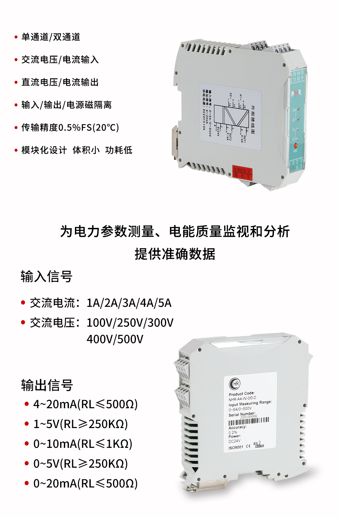虹潤公司是專業(yè)生產(chǎn)電流傳感器的國家專精特新“小巨人”企業(yè)。生產(chǎn)的簡易型電量變送器,具有交流電壓電流輸入,傳輸精度高,響應(yīng)時(shí)間快,輸入輸出電源磁隔離,體積小功耗低等特點(diǎn)。產(chǎn)品獲得基于一種交流信號(hào)變送器、交直流信號(hào)轉(zhuǎn)換電路、基于DCS技術(shù)的盤裝式三相電量表等3項(xiàng)國家發(fā)明專利,主持起草工業(yè)過程控制系統(tǒng)用模擬輸入兩位或多位輸出儀表國家標(biāo)準(zhǔn),直流漏電流傳感器規(guī)范、通信系統(tǒng)多通道數(shù)據(jù)采集控制終端規(guī)范等2項(xiàng)軍用標(biāo)準(zhǔn),以及現(xiàn)場設(shè)備集成等5項(xiàng)智能制造國家標(biāo)準(zhǔn),參與國際5G標(biāo)準(zhǔn)制定。產(chǎn)品廣泛應(yīng)用于電力、冶金、化工、水泥、造紙、新能源、基礎(chǔ)設(shè)施等用電密集行業(yè)。